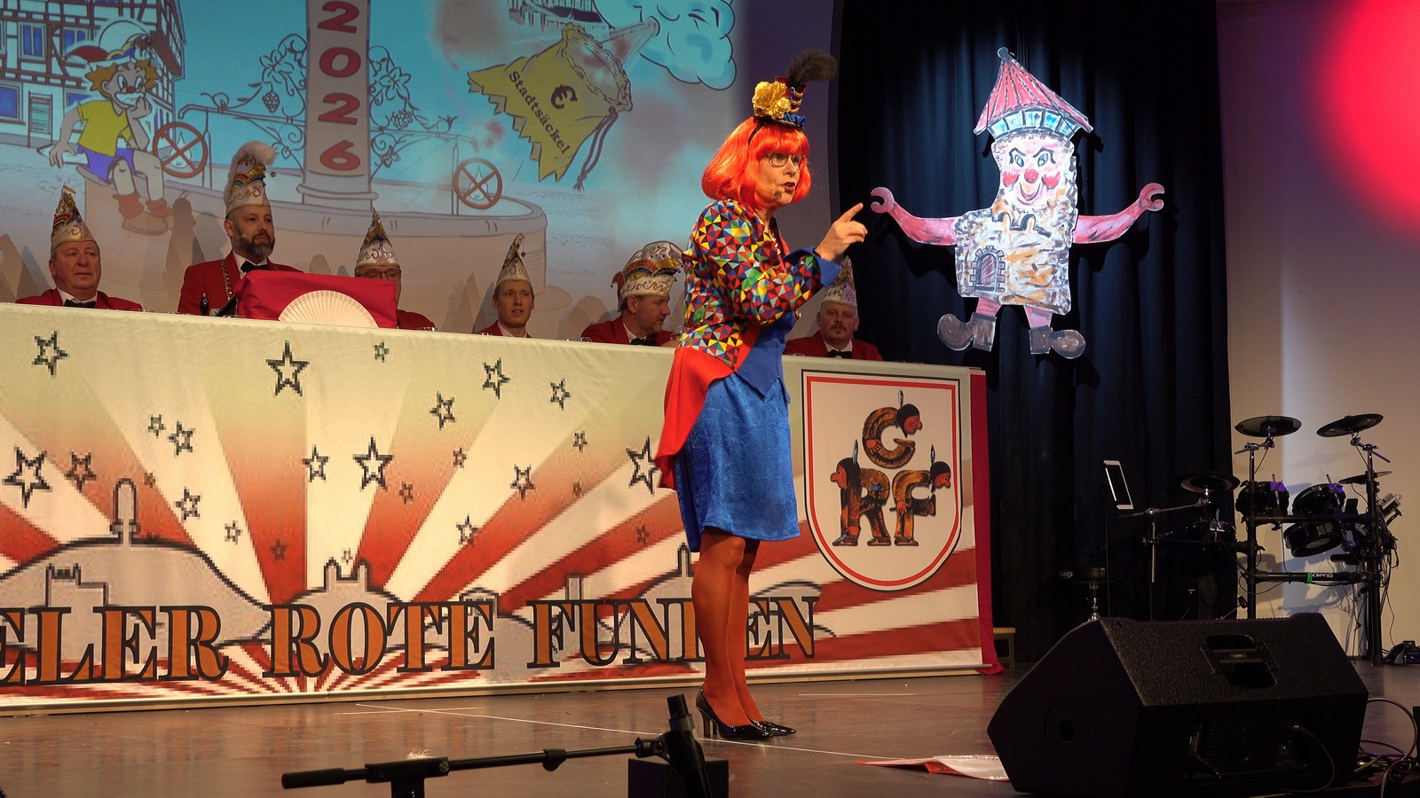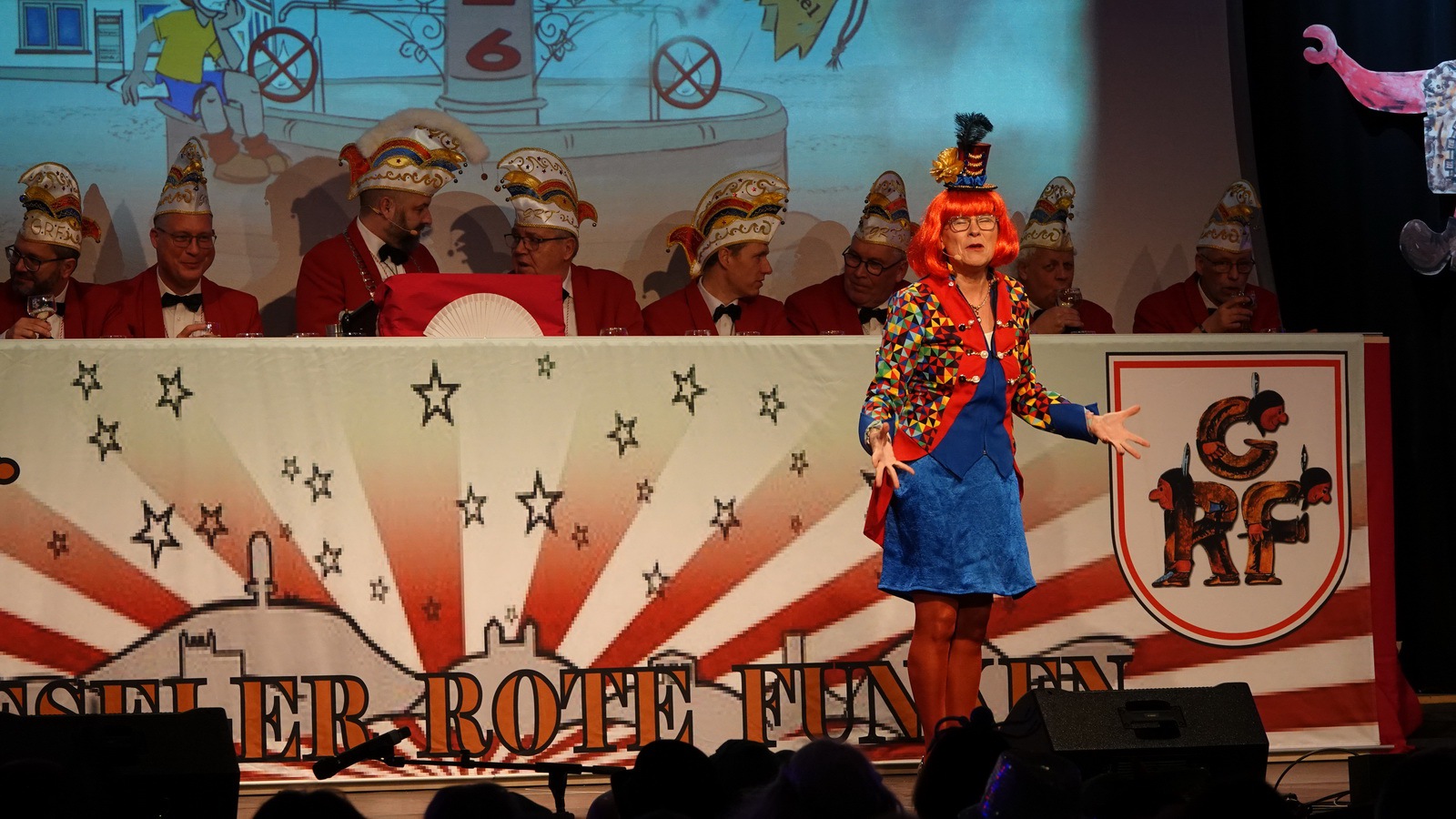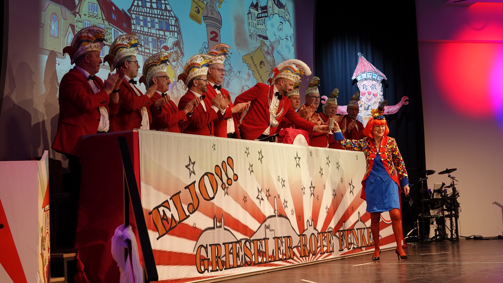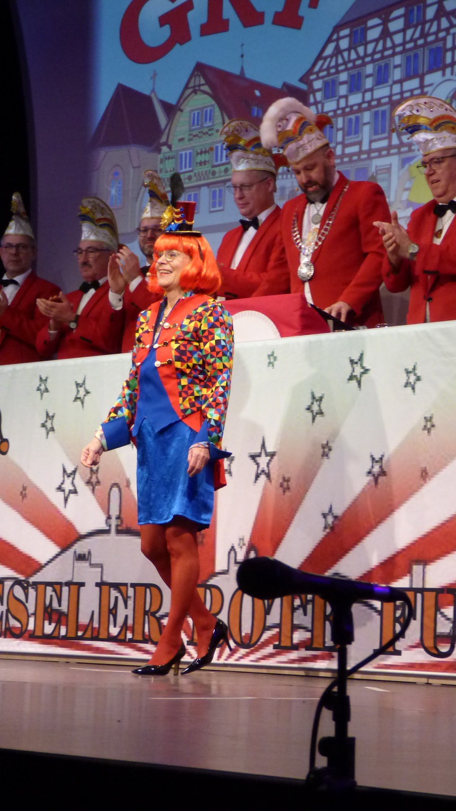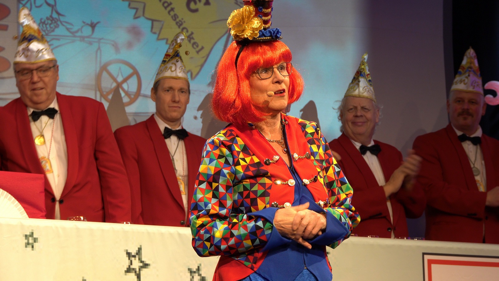 „Fastnacht wie sie ist“ und „Fastnacht wie sie war“ vereint Sibylle Weihrich mit vielen versteckten Liedzeilen in ihrem diesjährigen bunten Bühnenauftritt. Nur zu gerne lassen sich die anwesenden Gäste durch die wortgewaltige und feingereimte Rede mitreisen.