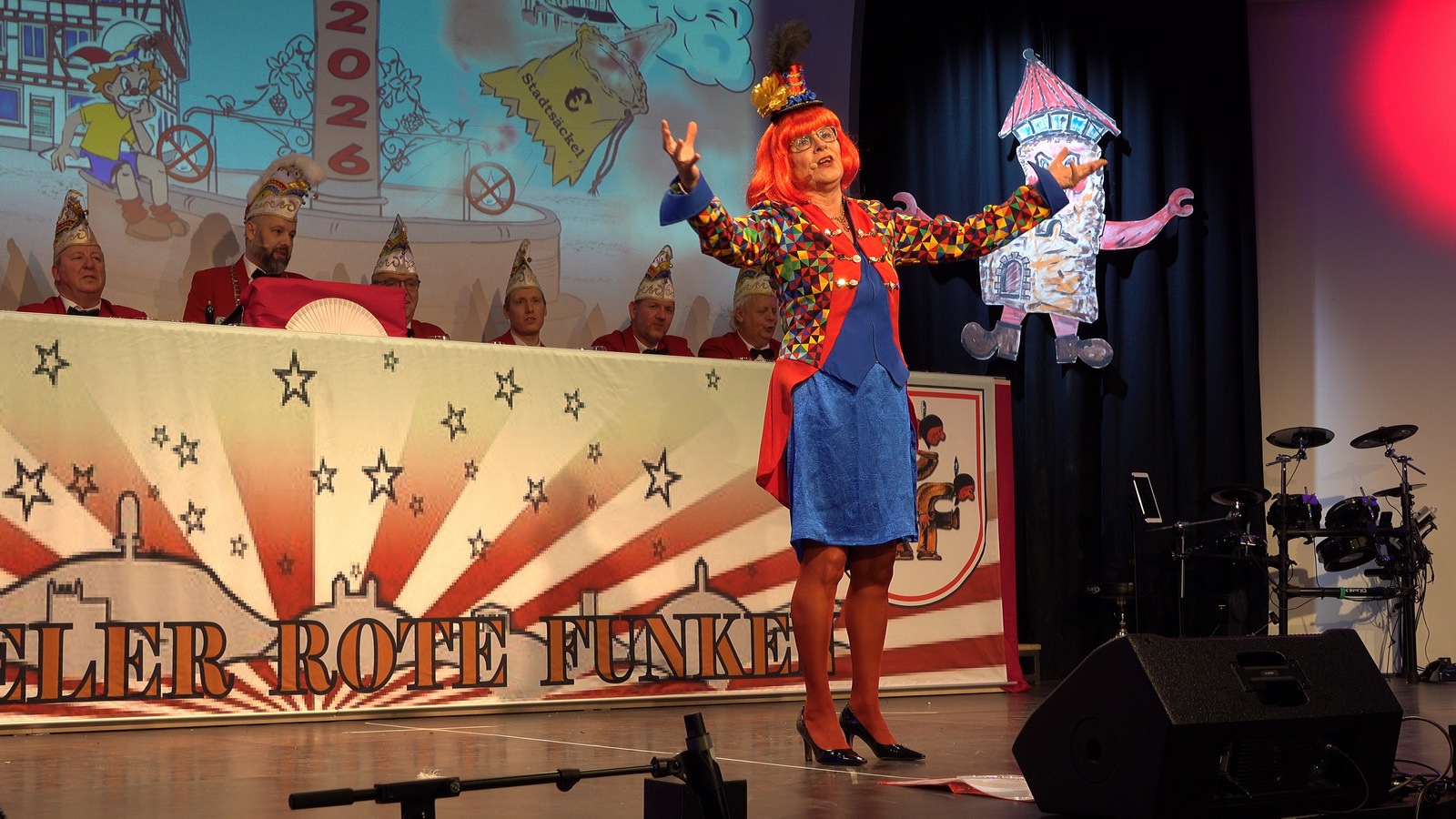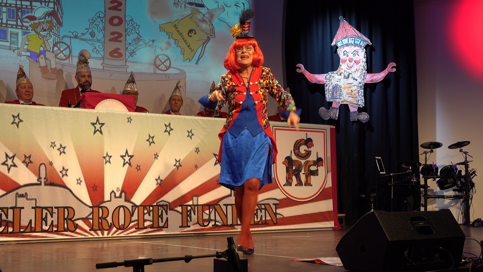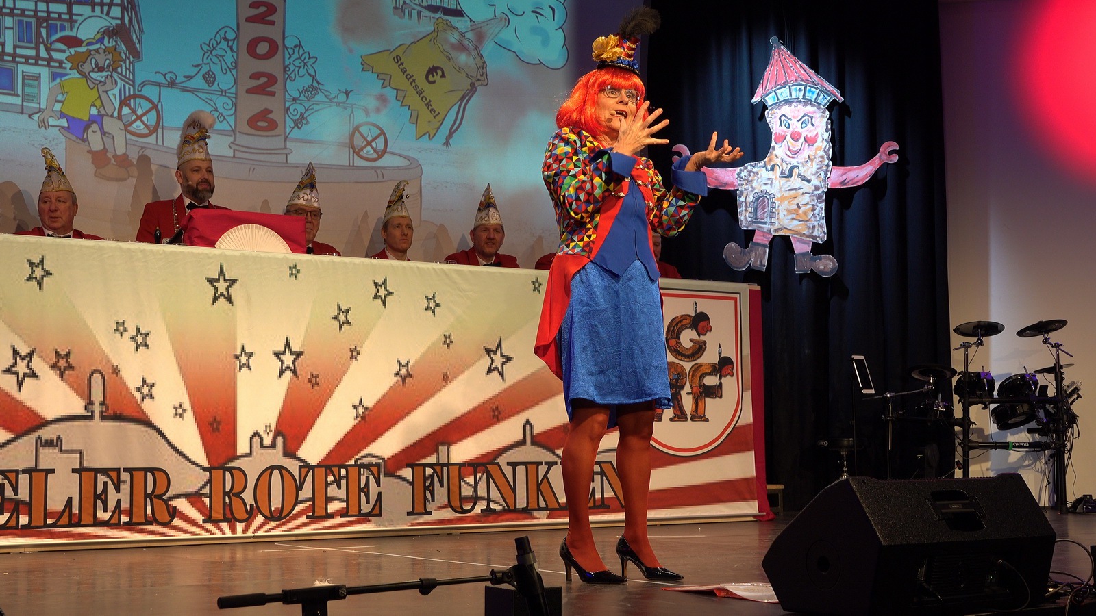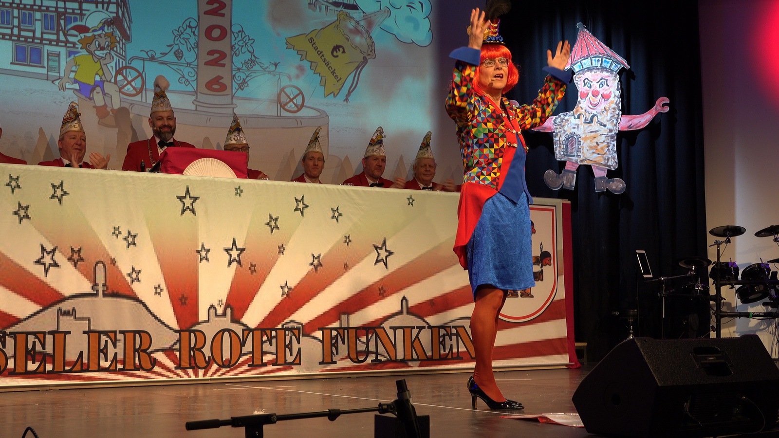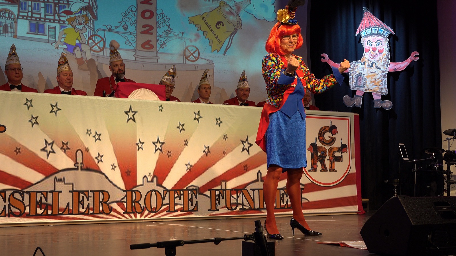 „Fastnacht wie sie ist“ und „Fastnacht wie sie war“ vereint Sibylle Weihrich mit vielen versteckten Liedzeilen in ihrem diesjährigen bunten Bühnenauftritt. Nur zu gerne lassen sich die anwesenden Gäste durch die wortgewaltige und feingereimte Rede mitreisen.