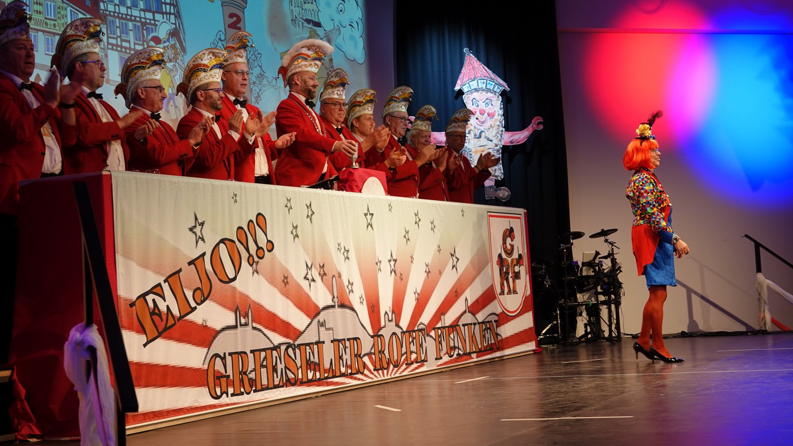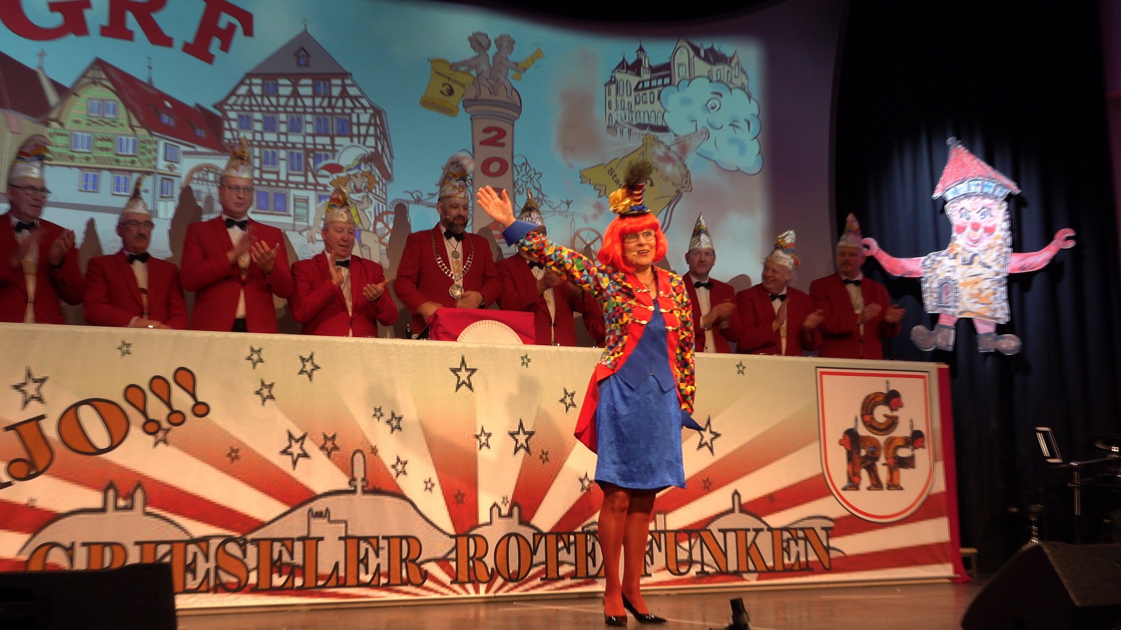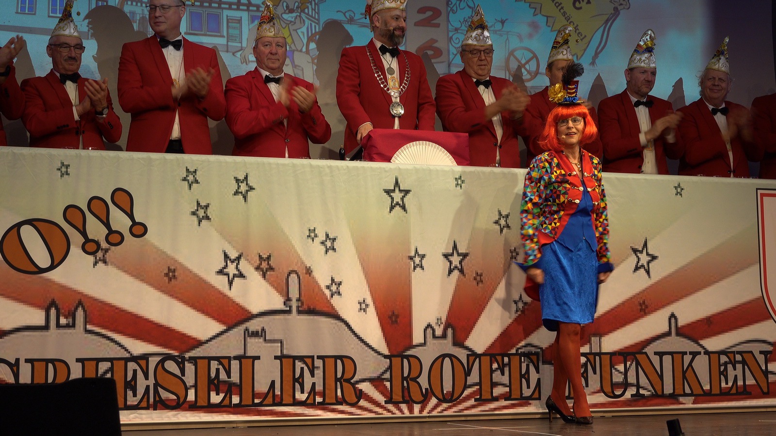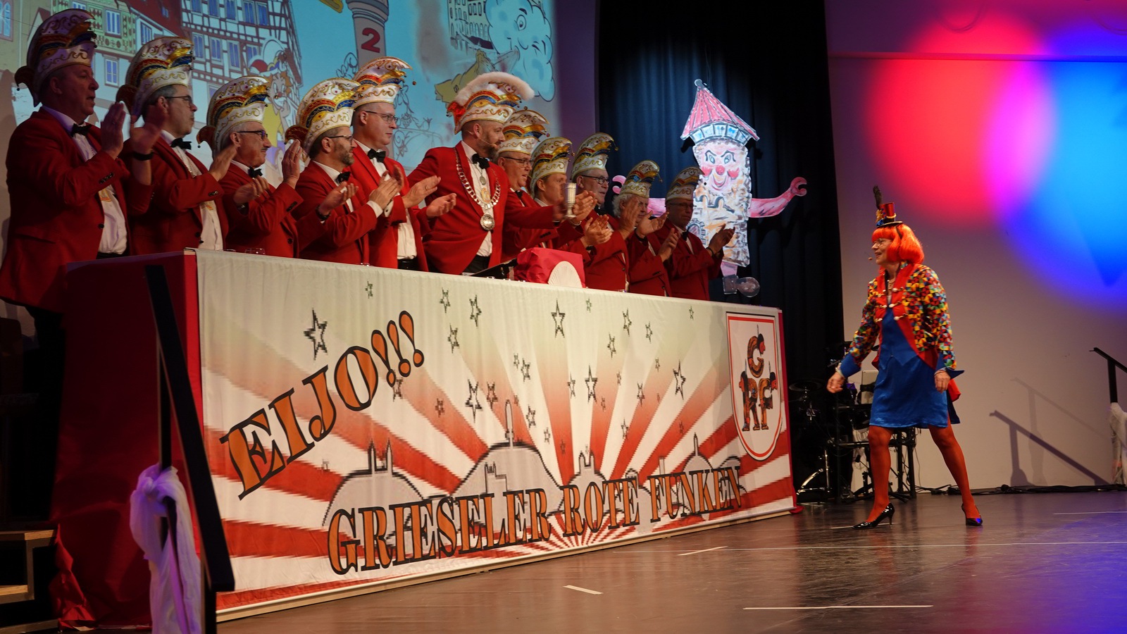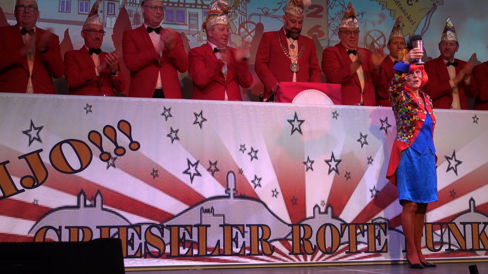 „Fastnacht wie sie ist“ und „Fastnacht wie sie war“ vereint Sibylle Weihrich mit vielen versteckten Liedzeilen in ihrem diesjährigen bunten Bühnenauftritt. Nur zu gerne lassen sich die anwesenden Gäste durch die wortgewaltige und feingereimte Rede mitreisen.