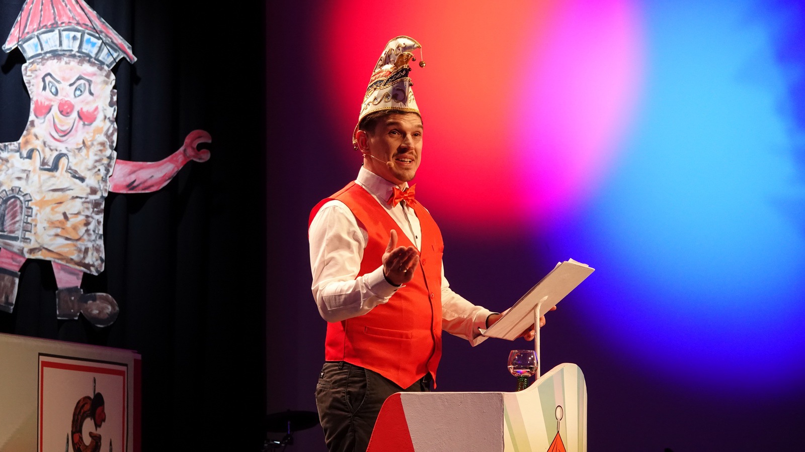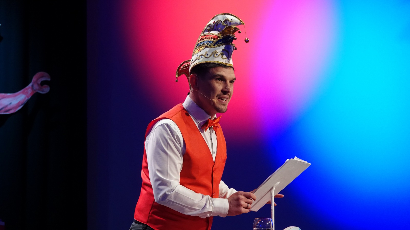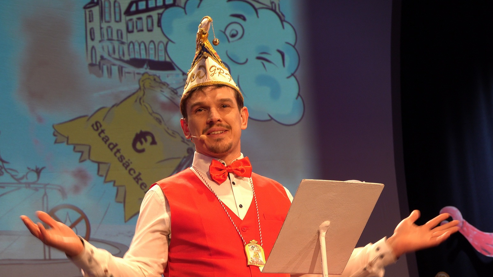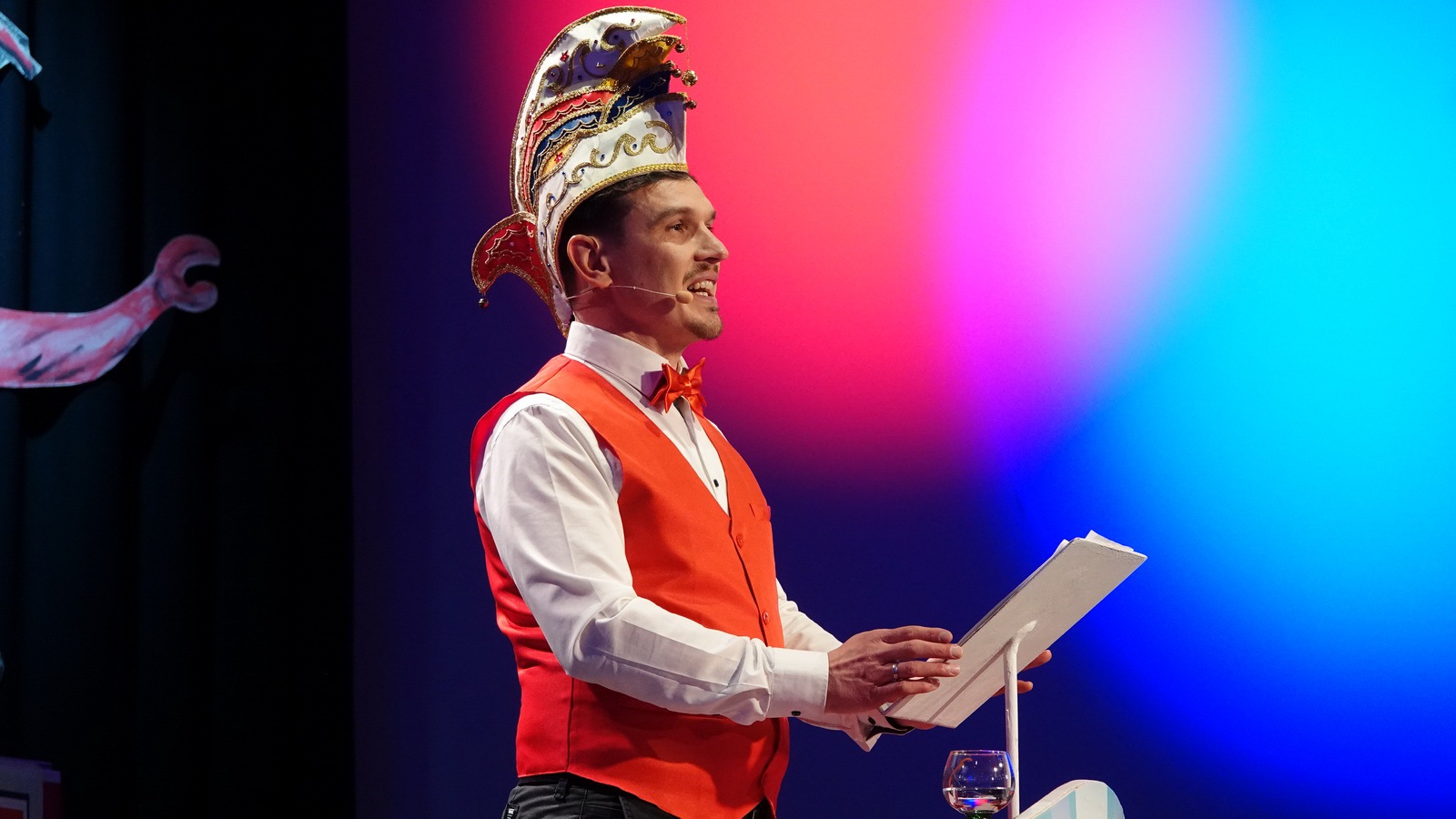 Da hat die Sitzung gerade erst angefangen. Er steht alleine auf der Bühne in der Bütt mit seinem Manuskript und vor ihm ein ganzer Saal voller Zuschauer die närrisch unterhalten werden wollen. Das Ganze in einer Zeit in der die halbe Welt durchdreht und Autograten, Diktatoren und Möchtegern-Könige mit Kriegen und Drohungen die Demokratie und westliche Werte angreifen und verraten. Das ist wahrlich keine einfache Aufgabe. Sie wurde aber wieder gekonnt gemeistert. Das bescheinigt auch unser aufmerksames Publikum mit seinem Applaus unserem Protokoller Rene Egetenmeier.