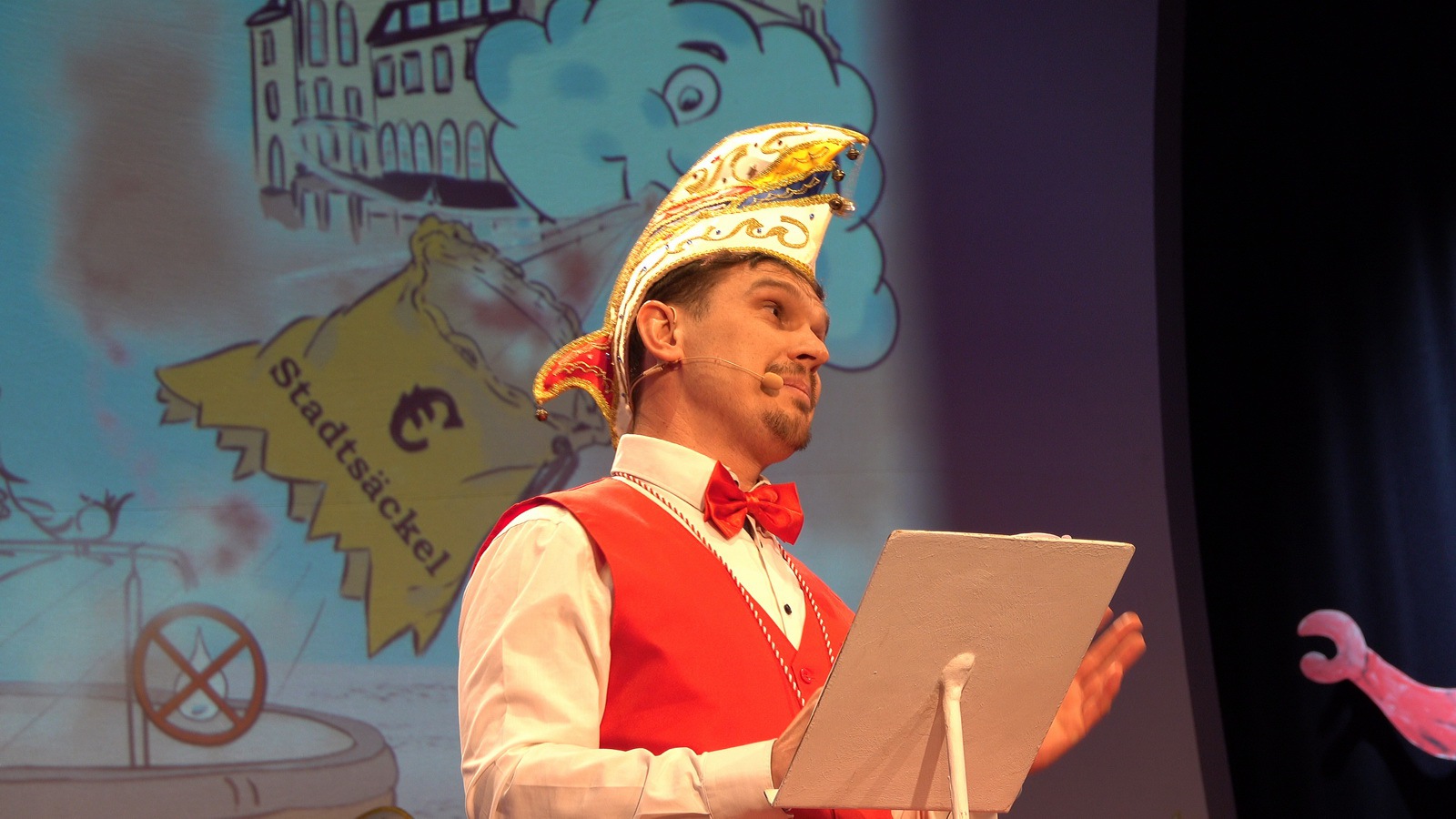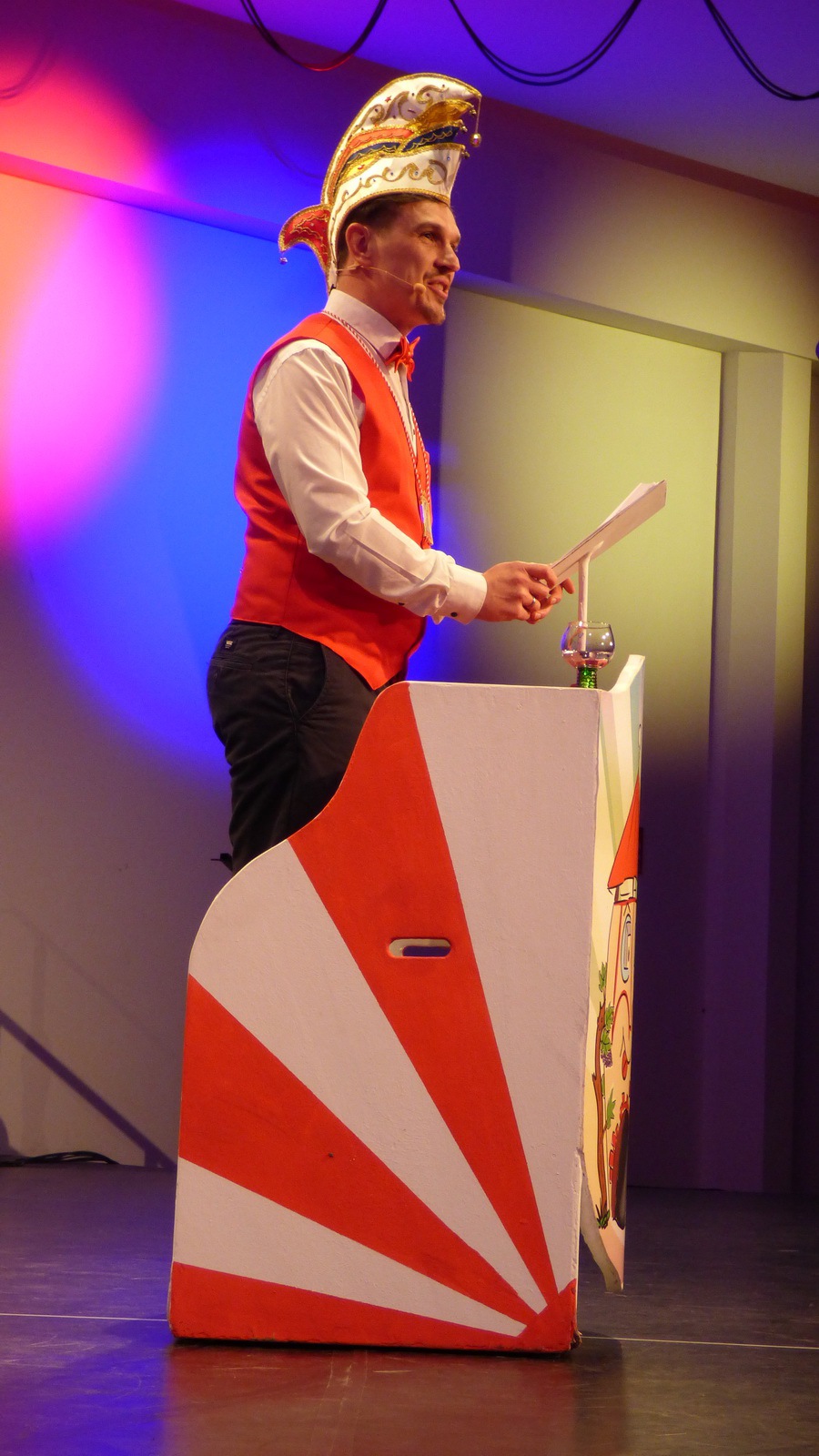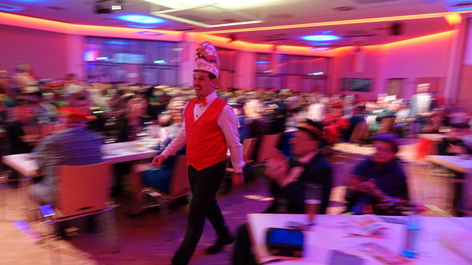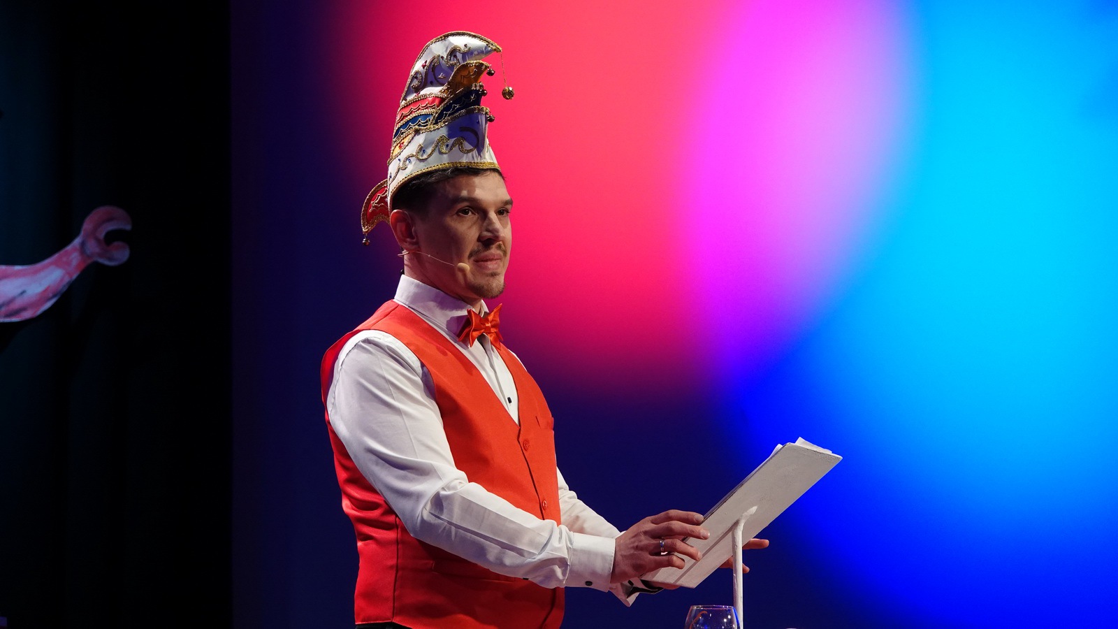 Da hat die Sitzung gerade erst angefangen. Er steht alleine auf der Bühne in der Bütt mit seinem Manuskript und vor ihm ein ganzer Saal voller Zuschauer die närrisch unterhalten werden wollen. Das Ganze in einer Zeit in der die halbe Welt durchdreht und Autograten, Diktatoren und Möchtegern-Könige mit Kriegen und Drohungen die Demokratie und westliche Werte angreifen und verraten. Das ist wahrlich keine einfache Aufgabe. Sie wurde aber wieder gekonnt gemeistert. Das bescheinigt auch unser aufmerksames Publikum mit seinem Applaus unserem Protokoller Rene Egetenmeier.